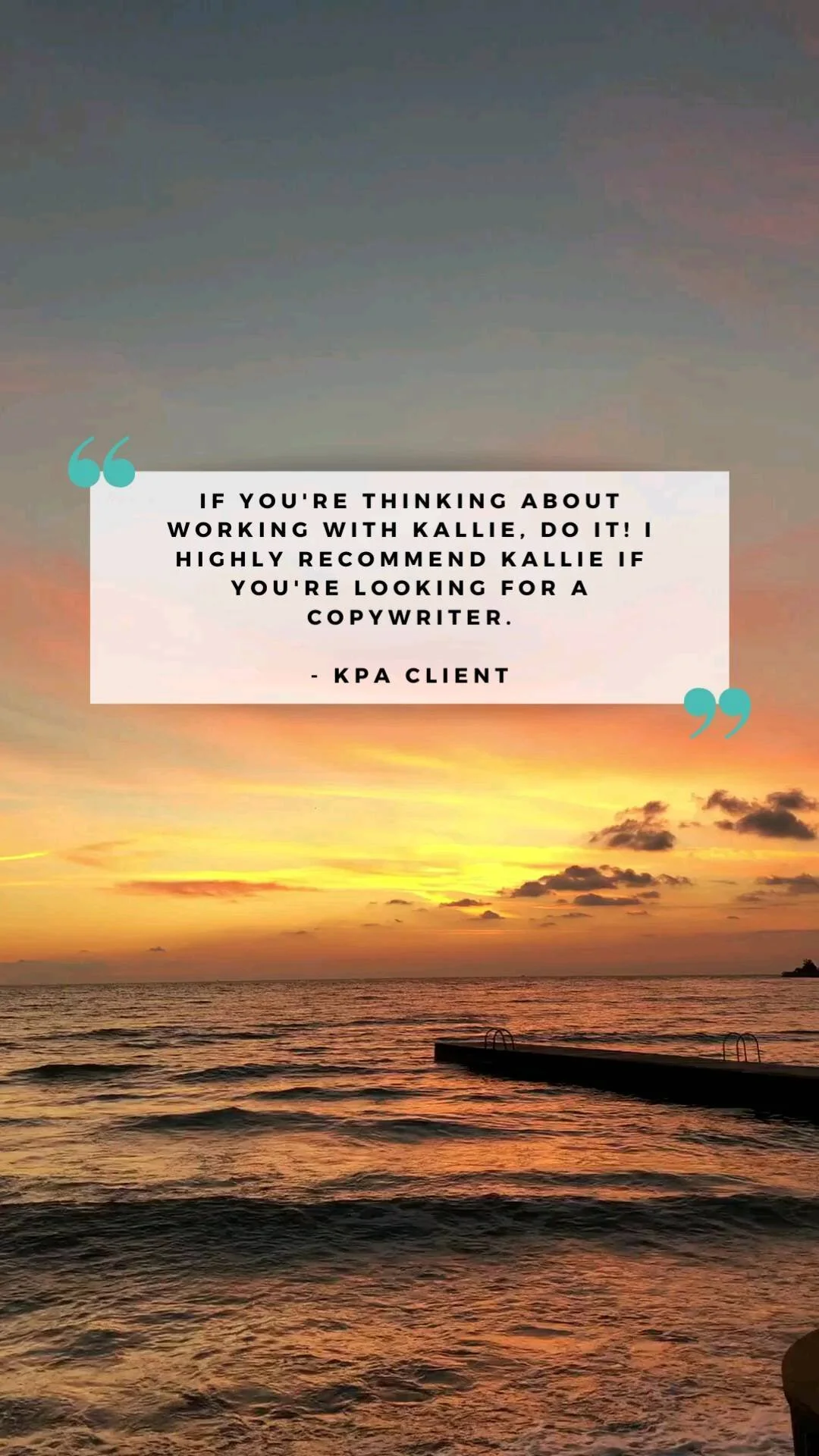 "I really enjoyed Kallie's genuine openness to help me learn about the copywriting industry. Not only was she willing to support me, she also made sure that I was learning which helped me to really understand that she loves what she does!"